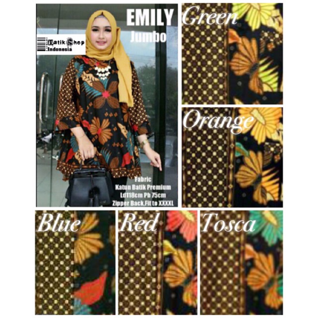 Name: Emily Jumbo Blouse Batik Wulu Sogan Klasik Atasan Casual Kerja Formal Blus Kondangan